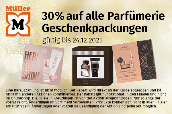 Hol dir jetzt 30 % Rabatt auf alle Parfümerie-Geschenkverpackungen – nur bis zum 24.12.2025. Perfekt für Weihnachten oder um dir selbst etwas Gutes zu tun.