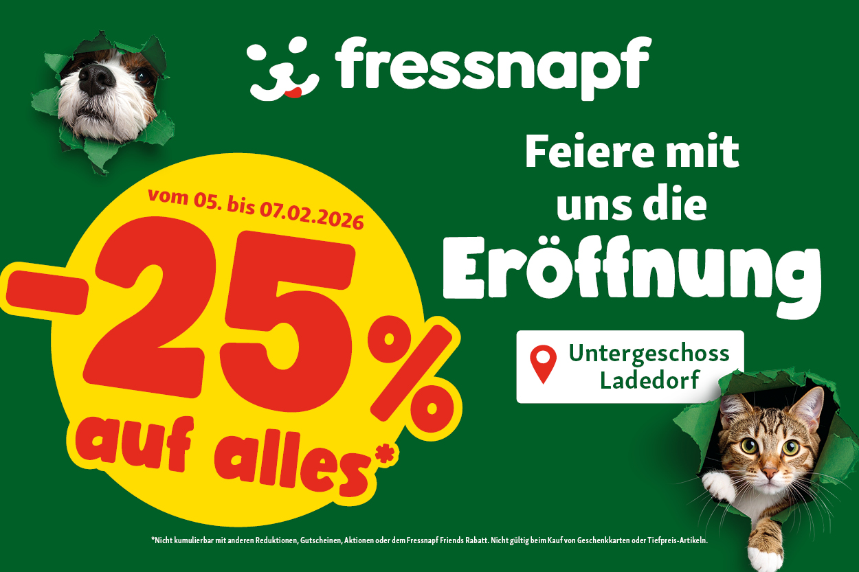*Nicht kumulierbar mit anderen Reduktionen, Gutscheinen, Aktionen oder dem Fressnapf Friends Rabatt. Nicht gültig beim Kauf von Geschenkkarten oder Tiefpreis-Artikeln.